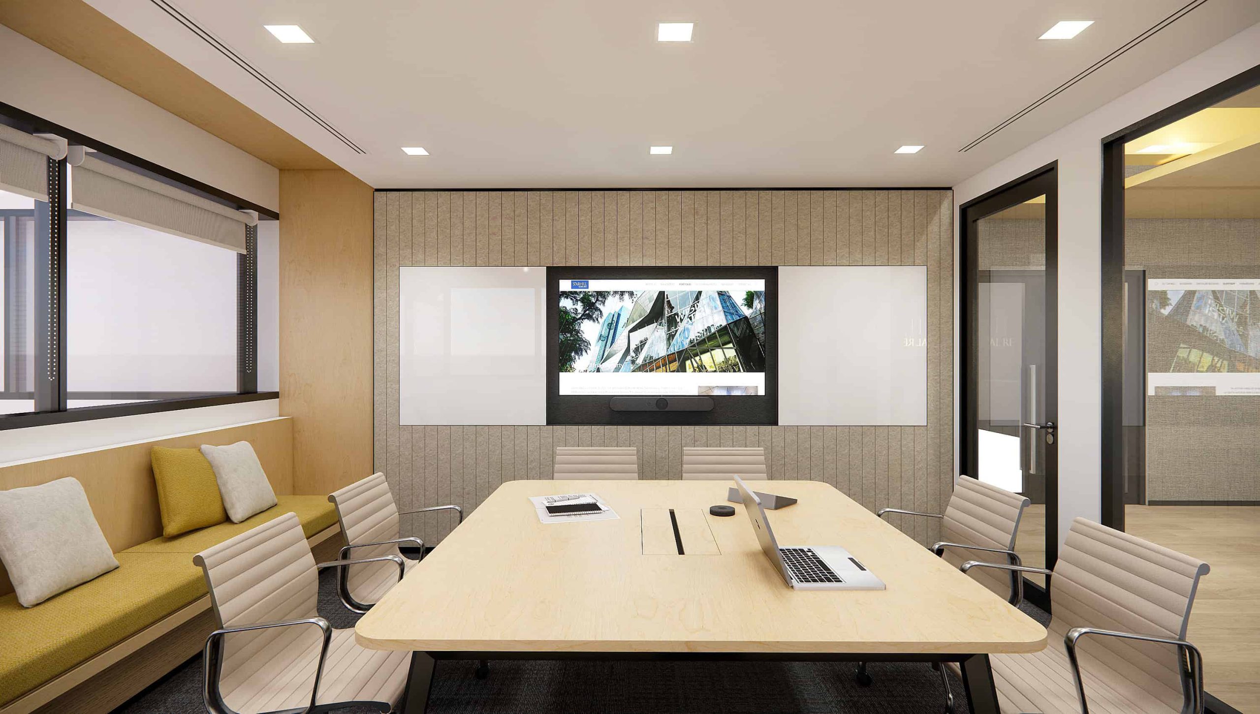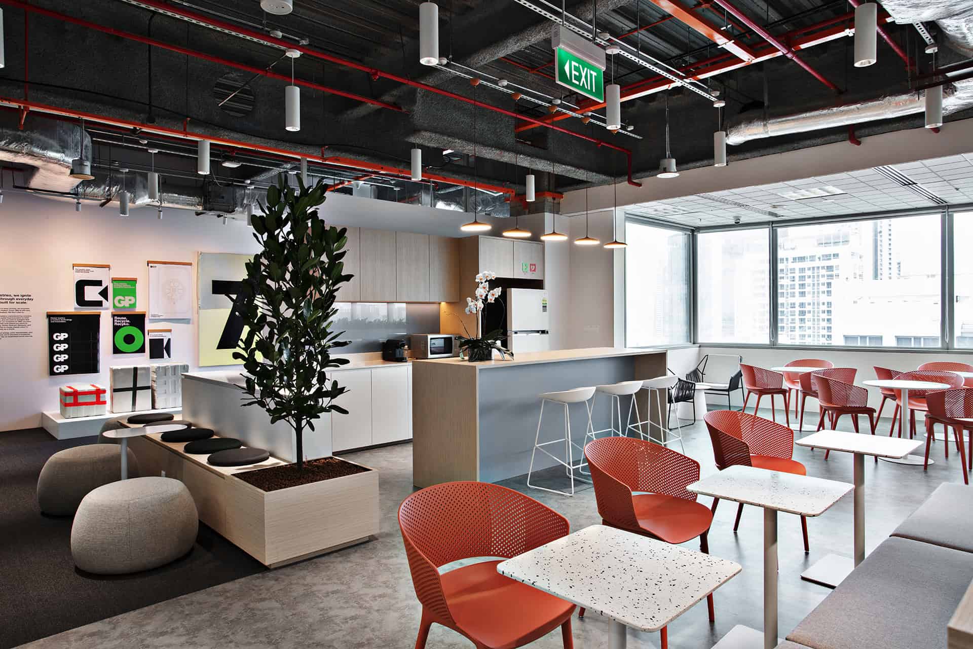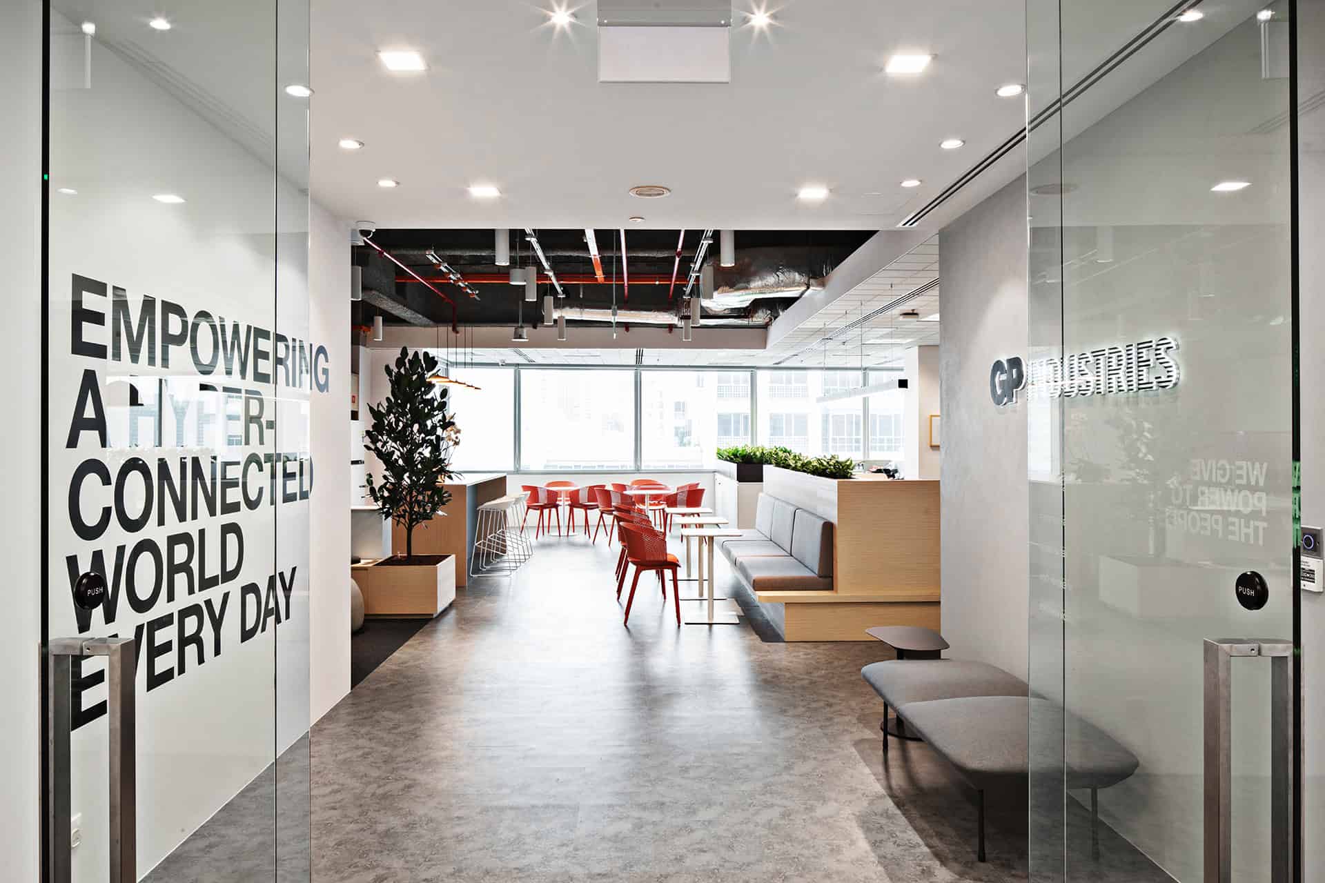 to auditorium. Durable yet tactile materials pair with greenery to soften the tech edge, while an activity- based layout keeps the space dynamic, adaptable, and ready for teams on the move.”