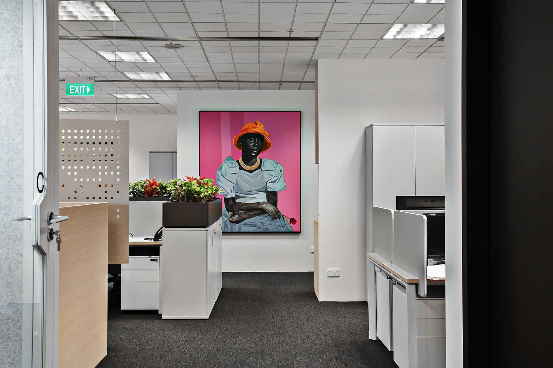“A vibrant, brand-driven workplace that embodies Workato’s spirit of integration. Bold color-blocked walls and signage in Workato blue with lively accents energize the floor, guiding people through focus pods, open collaboration lounges, and a pantry that transforms into an event hub. The oversized