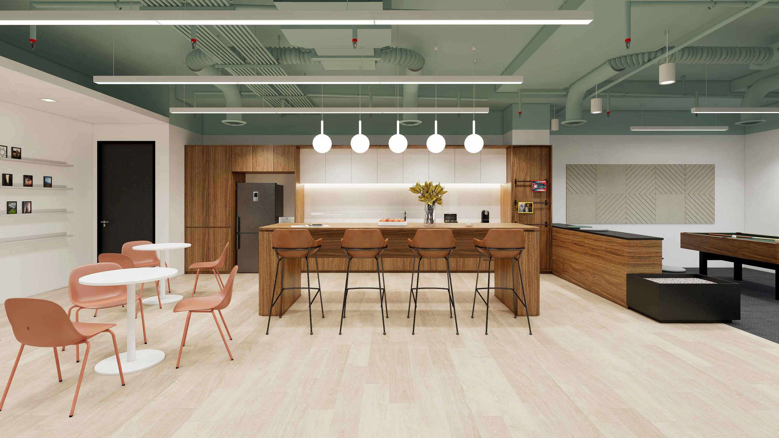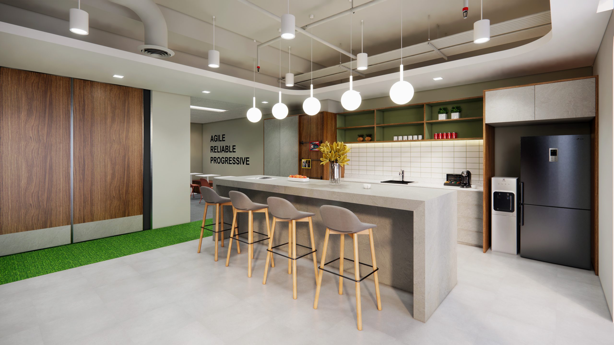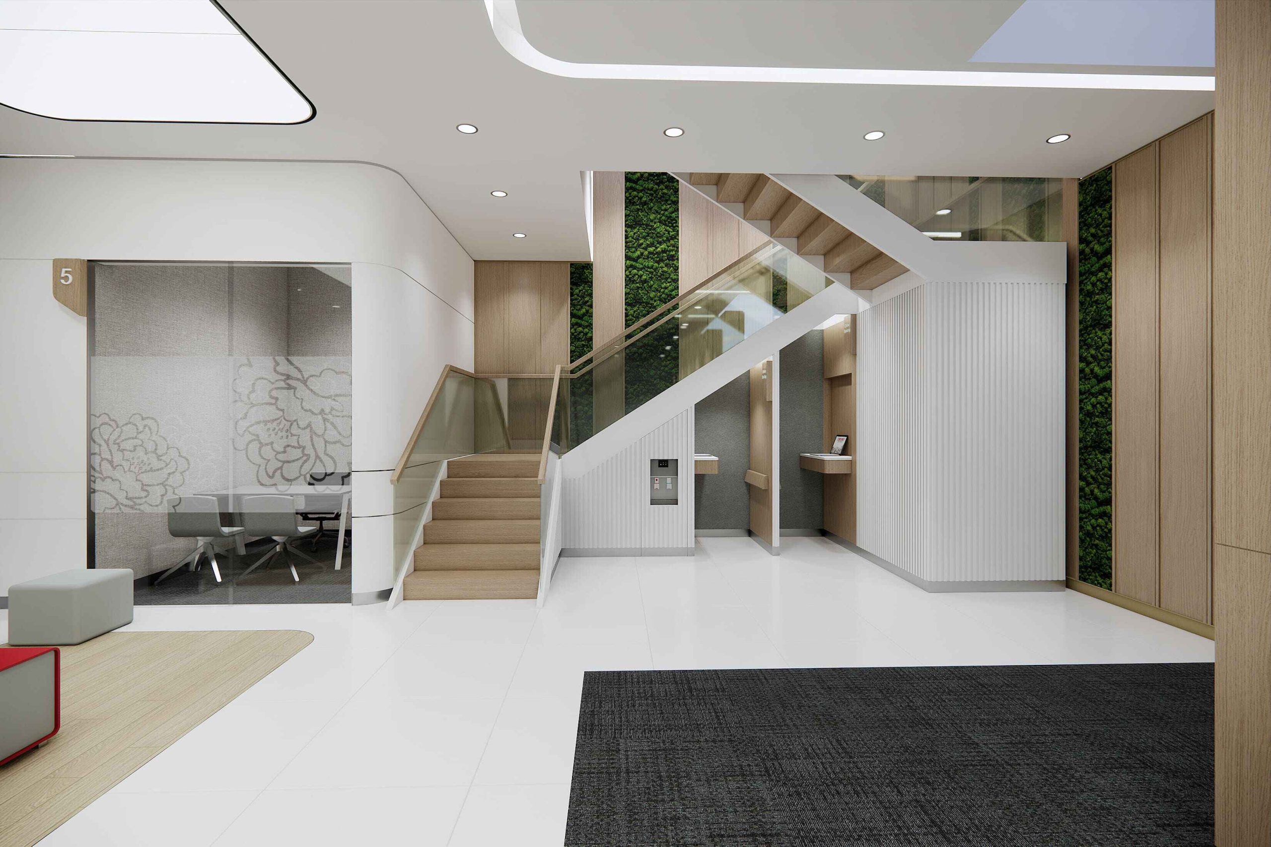 Task to design an open office that promotes collaboration. Design also to allow for regional executive level meetings. This is the first relocation for the company in decades and thus a complete transformation from existing office design.